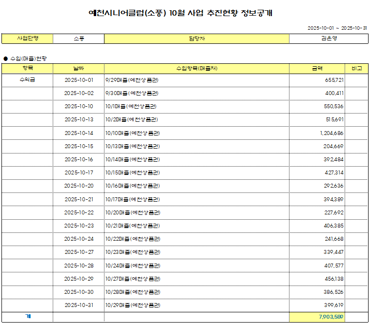 2025년 10월 예천시니어클럽(소풍) 정보공개 페이지 정보 작성자 관리자 작성일25-11-05 09:51 조회4회 댓글0건 본문 댓글목록 등록된 댓글이 없습니다. 이전글 다음글 목록